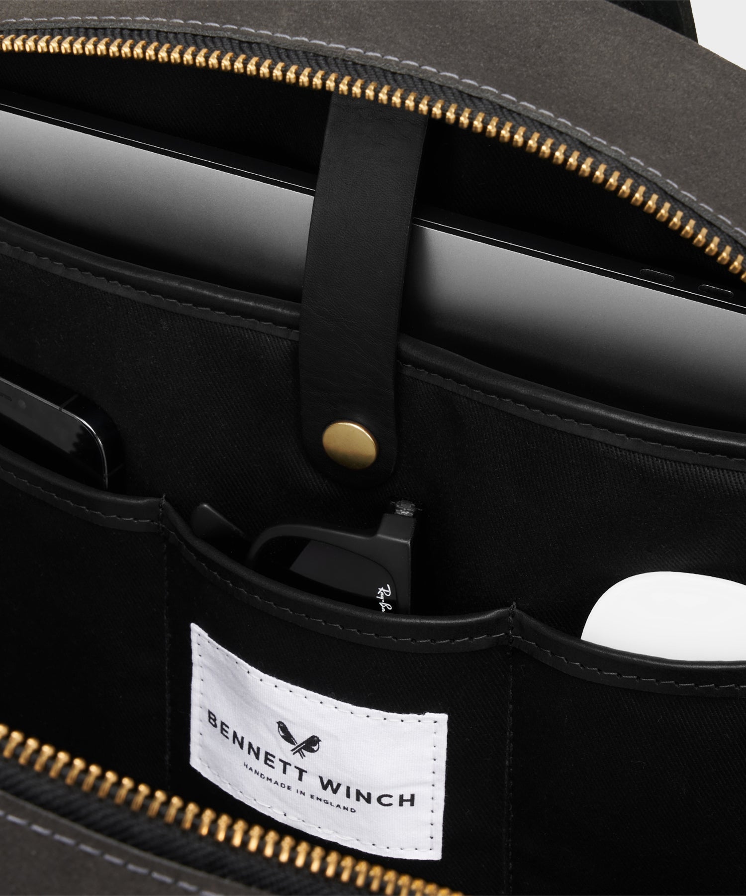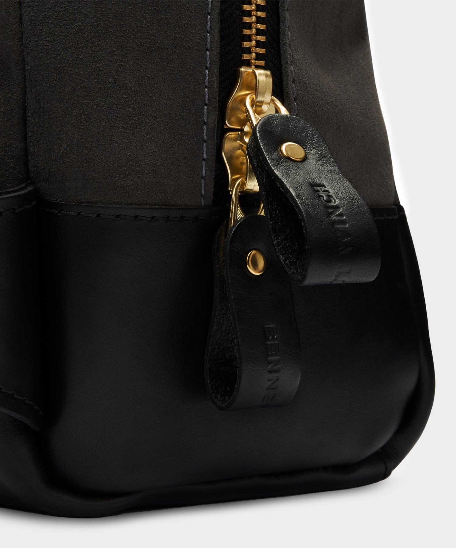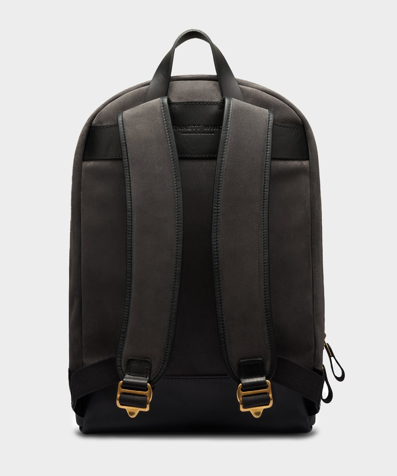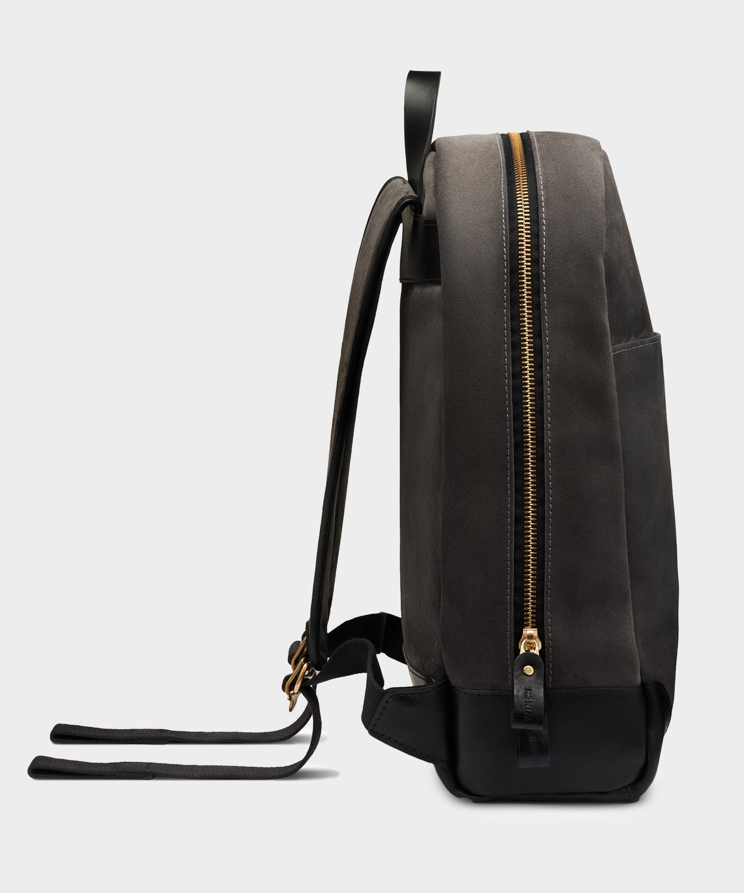 Handmade in England from moss-backed Italian suede, this 22L backpack is moisture-resistant while retaining the soft feel of medium temper napped suede. Ergonomically shaped straps ensure balanced weight distribution, complemented by solid brass British-cast hardware. Designed for both function and form, it features a fully protected laptop sleeve that fits up to a 16" device (including MacBook Pro), a concealed front phone/wallet pocket, and multiple internal storage compartments. A detachable, fully waterproof shoe or gym gear compartment adds versatility, alongside a full-length removable wet pouch. IATA carry-on compliant.
