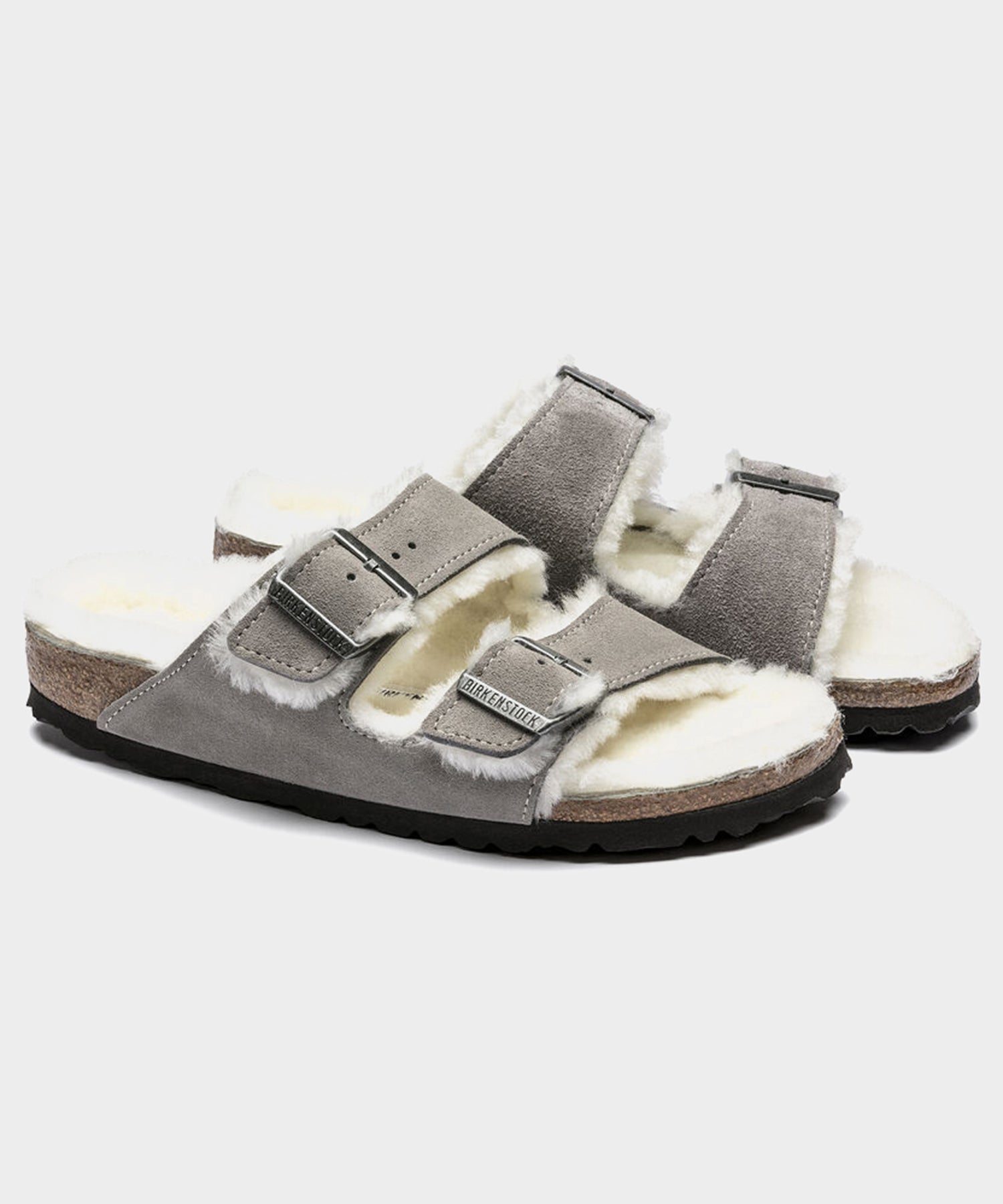 The popular BIRKENSTOCK Arizona is a classic model with two adjustable straps. Featured in genuine high-quality suede – and is now available in an extra cozy version thanks to a soft, bright genuine shearling lining on the anatomically formed cork-latex footbed and straps.