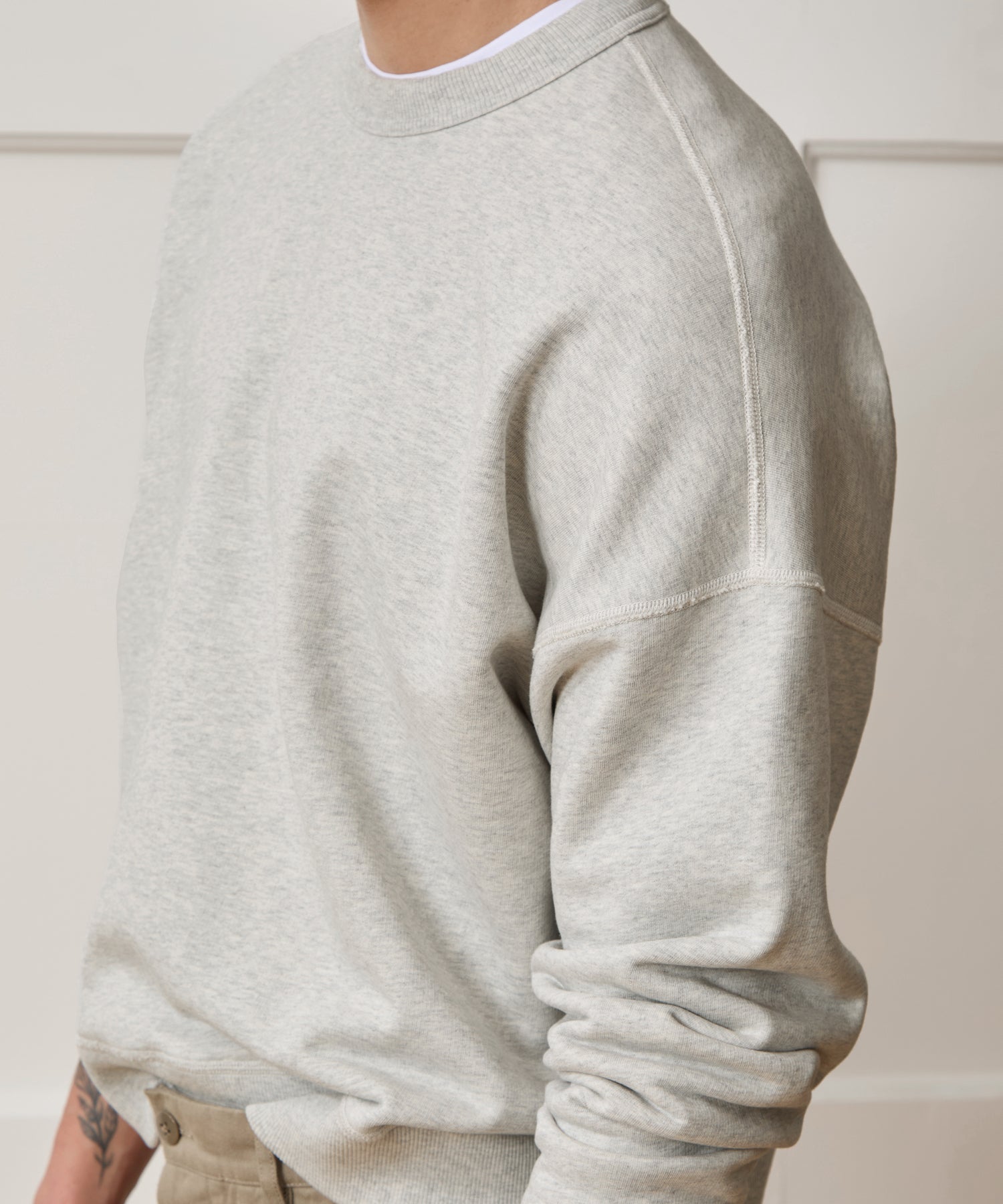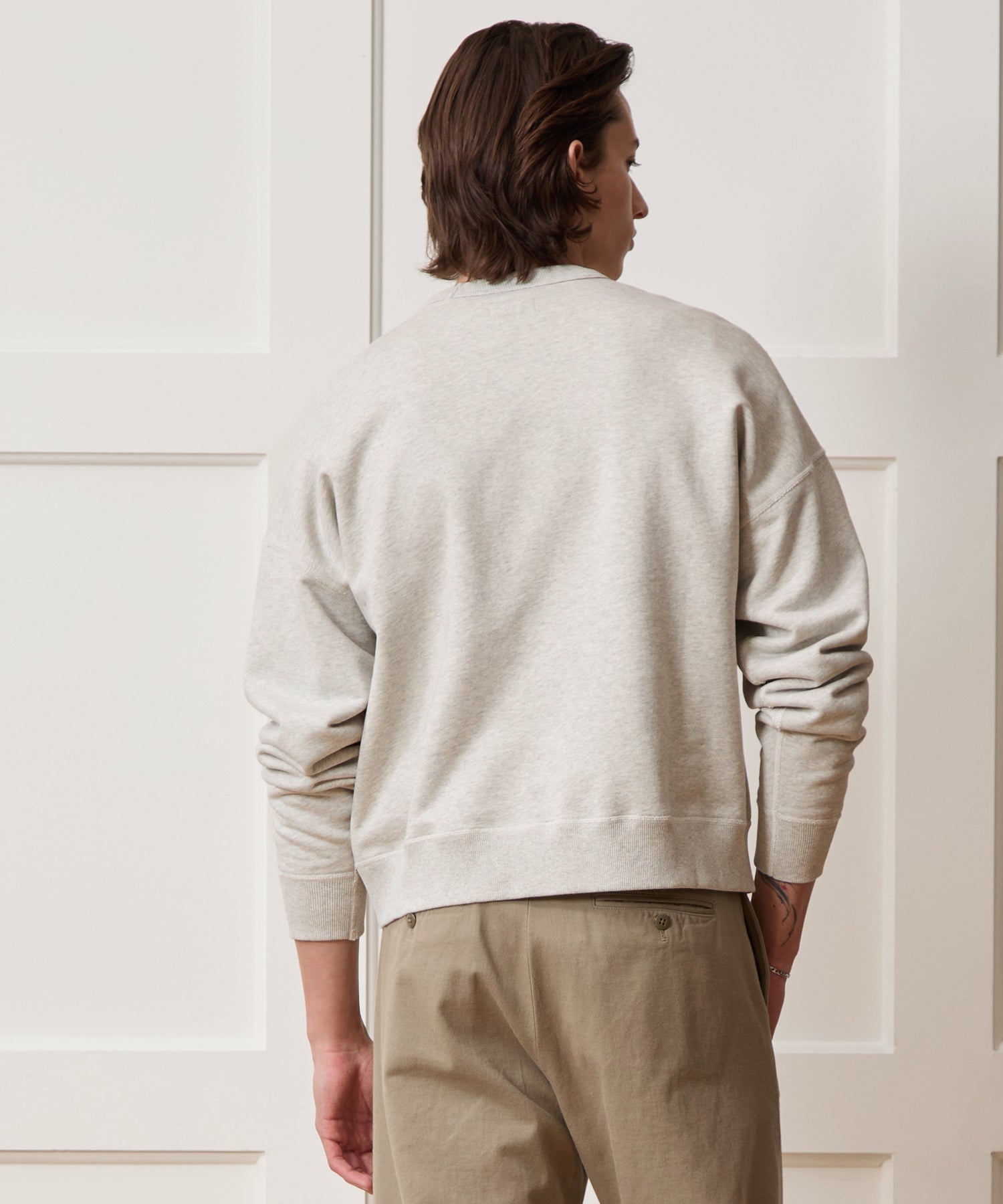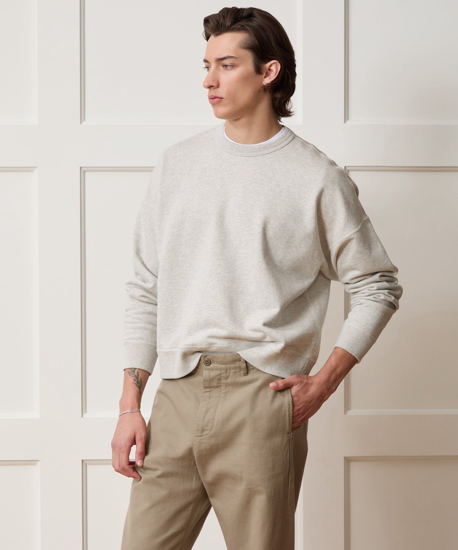 Timeless comfort meets modern style in this Terry Crewneck. The Portuguese cotton terry clocks in at a heavy 435 grams per square meter, and has an old-school handfeel: dry and dense, but soft. The ribbing at the cuffs and hem, as well as the flatlocked seams throughout, continue the vintage-inspired detailing. The twist is in the fit: an on-trend, slightly cropped silhouette meant to taper at the waist, with gently dropped shouders and a generous amount of room through the chest. Style tip: Wear it with a pair of high-waisted pants for a serious proportion play.