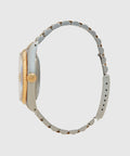 The 36mm case features Rolex’s signature combination of steel and gold, paired with a Jubilee bracelet that offers both comfort and understated elegance. The champagne dial is enhanced by a fine printed chapter ring, while the luminous hands and plots have aged to a warm latté tone, adding vintage charm.