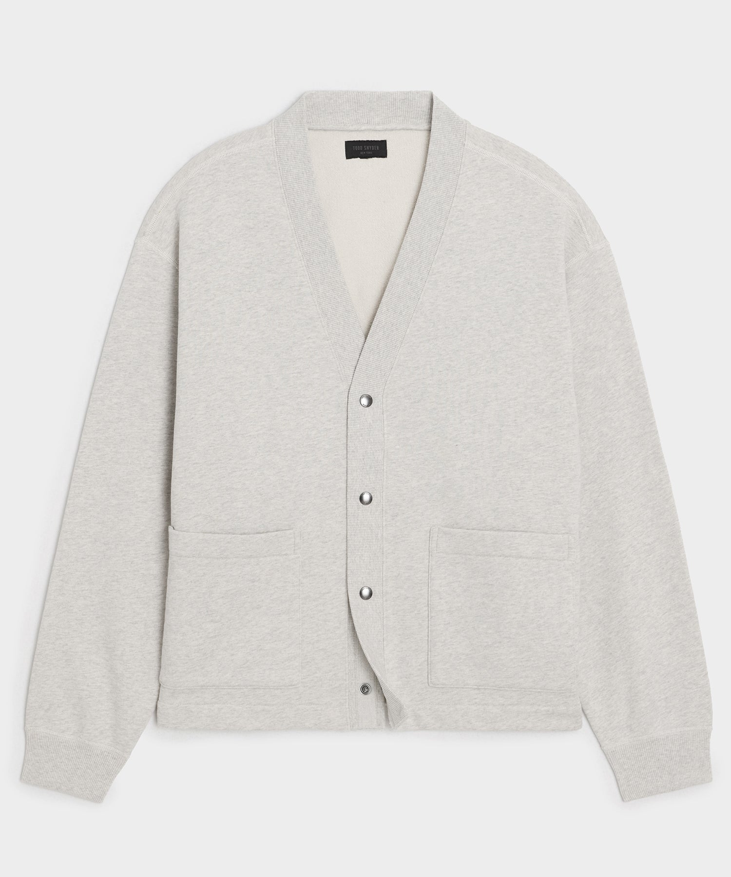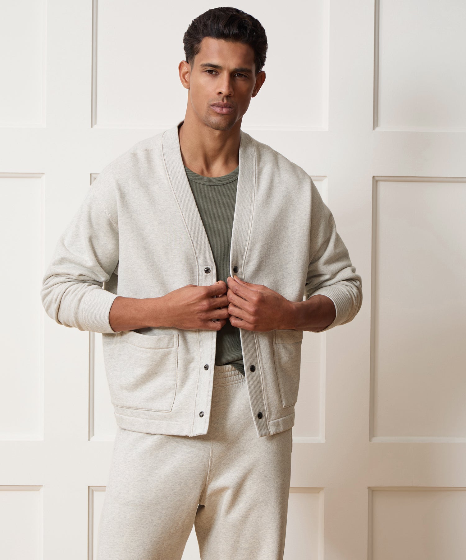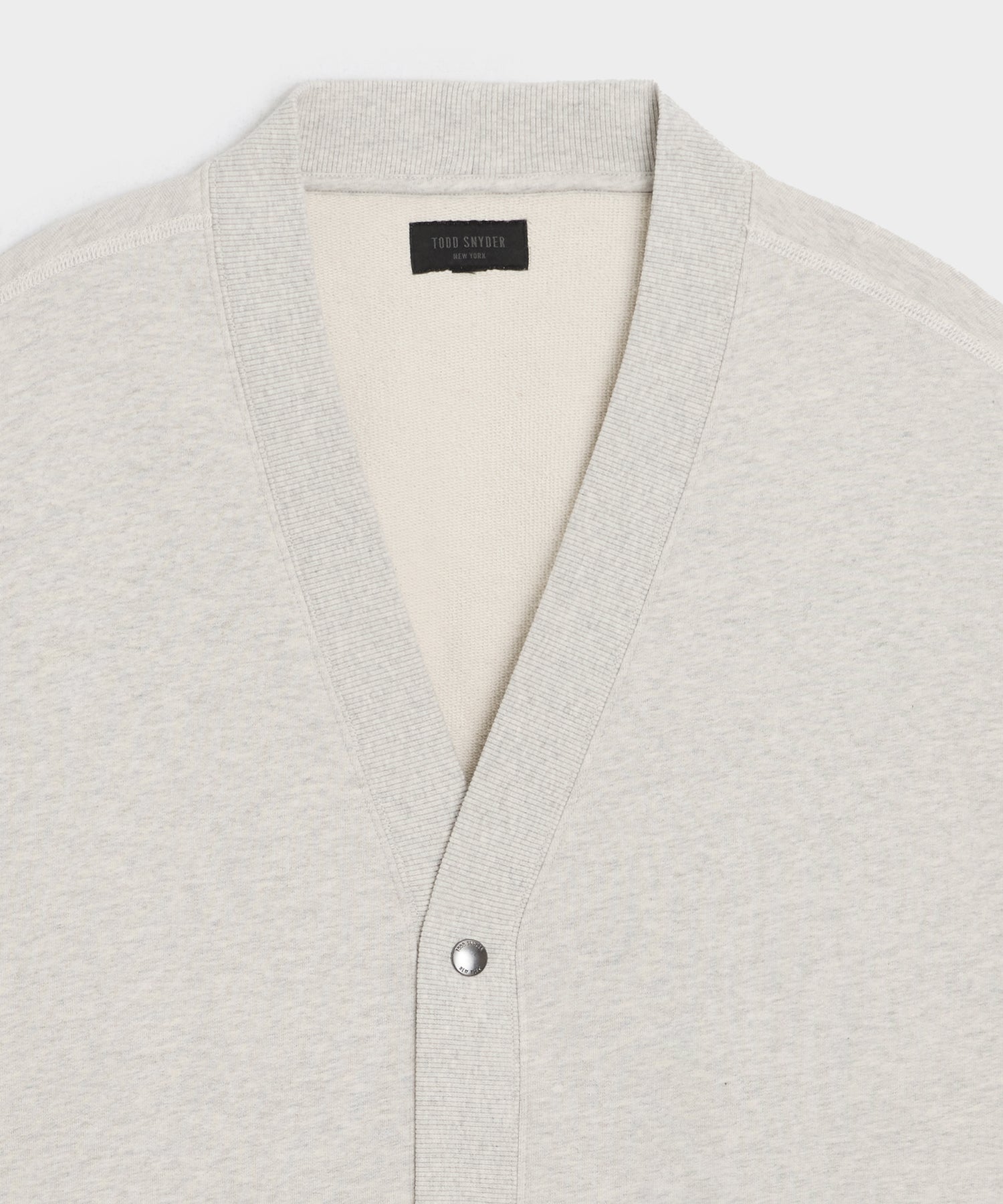 Your new go-to layer, and a personal Todd favorite. This sweatshirt-meets-cardigan is crafted from an all-cotton terry made in Portugal, which clocks in at 380 grams per square meter (AKA the ideal three-season weight). It has a relaxed fit and clean v-neck front, with coverstitching throughout in a nod to its athletic origins. Other design details include silent gunmetal snaps and two patch pockets.