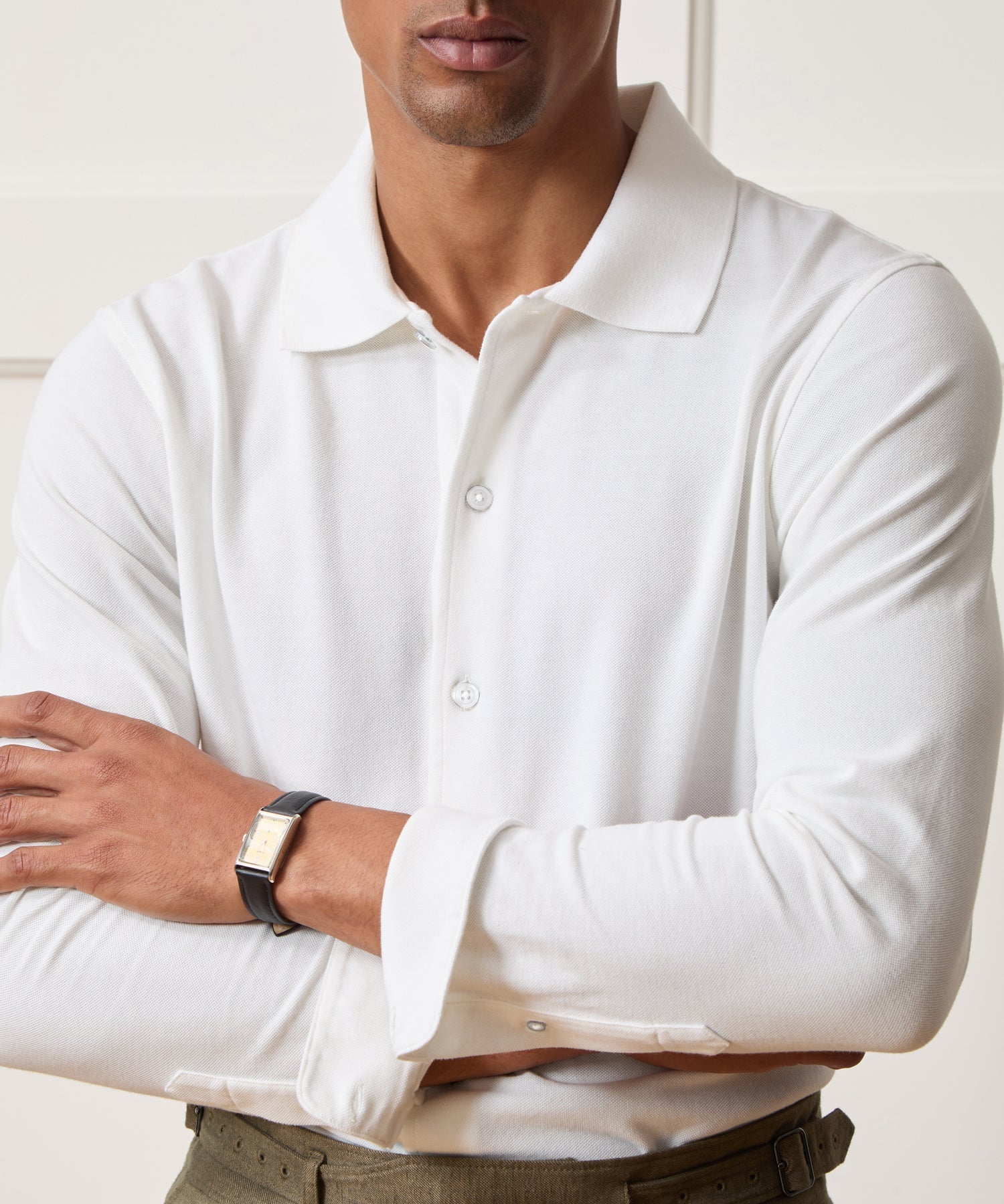 This Pique Shirt combines the feel and comfort of a polo with the stylish good looks of a woven shirt. It’s made from a Portuguese organic cotton fabric with a dry handfeel and the classic subtle waffle texture of a pique. The silhouette blends ease and sophistication, with shirt cuffs and a collar and a comfortable split hem. Easy to dress up or down, you can wear it all on its own, under a jacket or sport coat, or open, layered over a tee or tank.