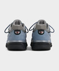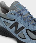The Made in USA 990v4, originally introduced in 2016, continued to refine the v3's modernization of the silhouette. This new addition to the Seasonal Collection features a mesh, nubuck, and suede upper, outfitted in Arctic grey, set against a contrasting black sole unit.