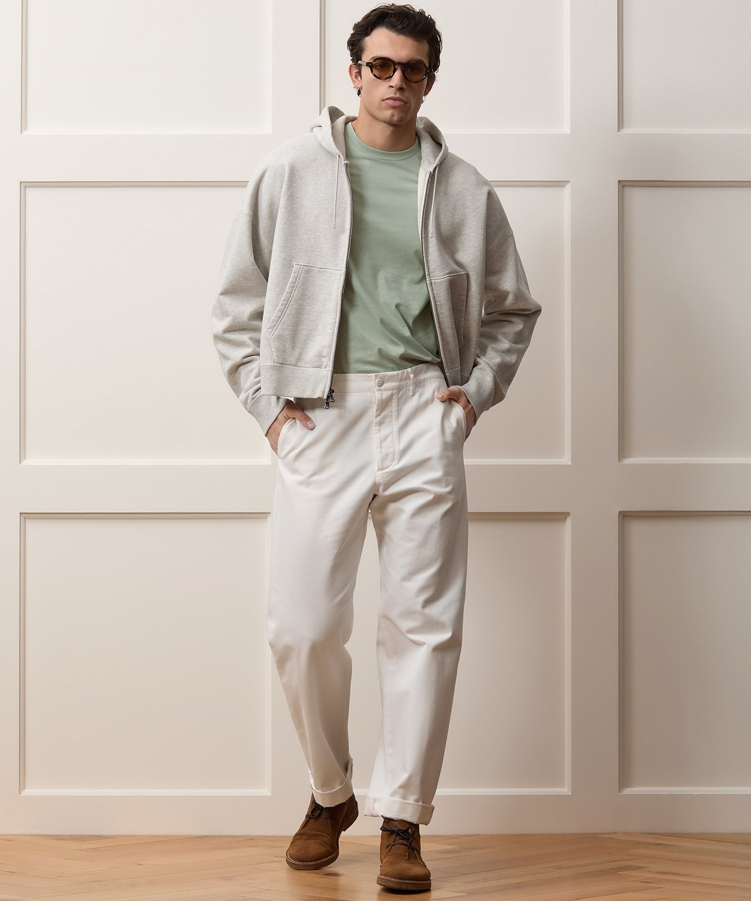 If you want a better chino, sometimes you have to design it yourself…and that’s exactly what Todd did here, pulling together the key elements of the classic chinos he’s known, worn, loved and lost. The fabric, which is imported from Japan’s famed Kuroki Mill and made on traditional shuttle looms, recreates the dry-yet-soft feel of a vintage military khaki. The details are inspired by a pair of old-school wide-legged pants found by our designers, which makes for a perfect modern take on a classic.