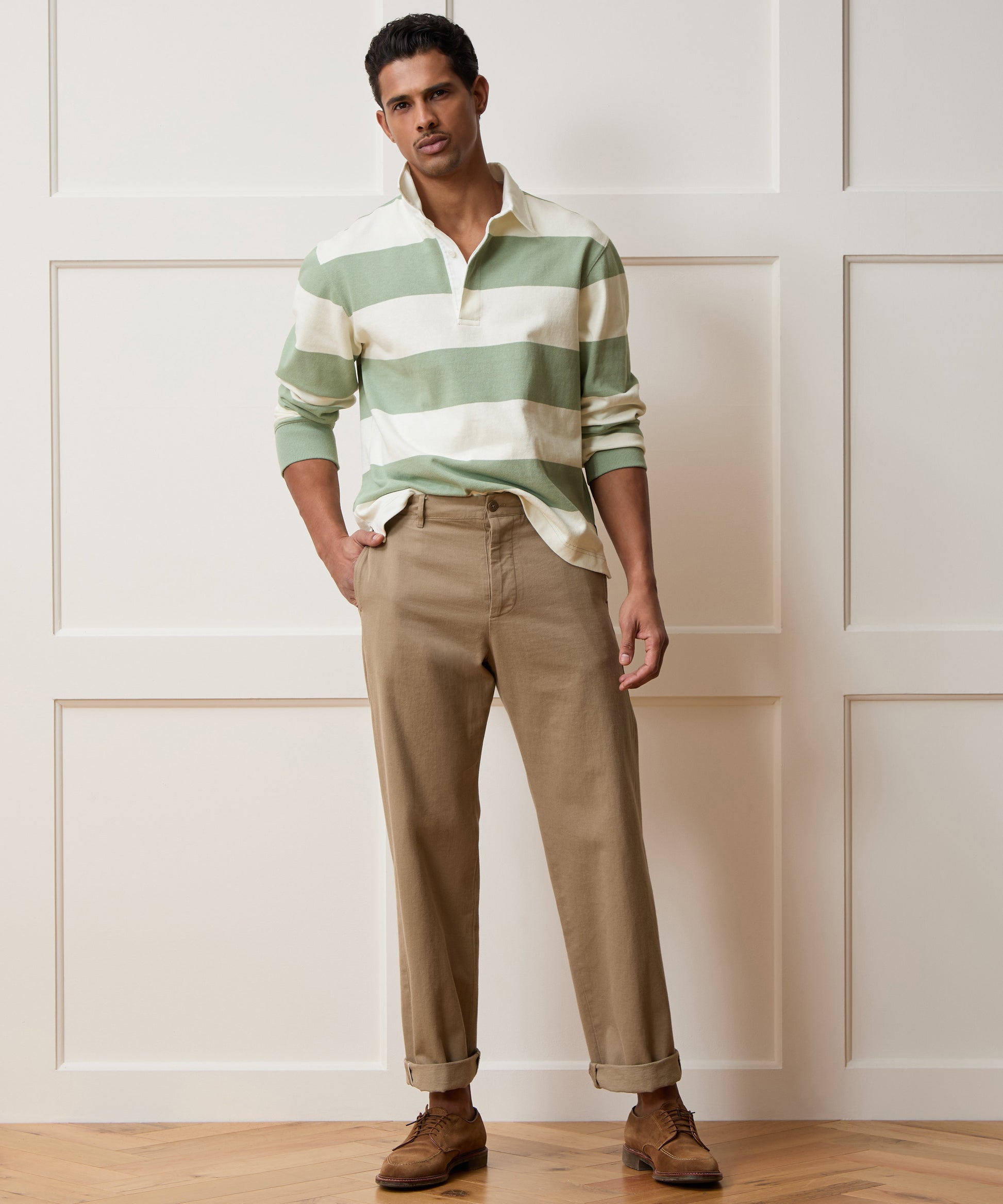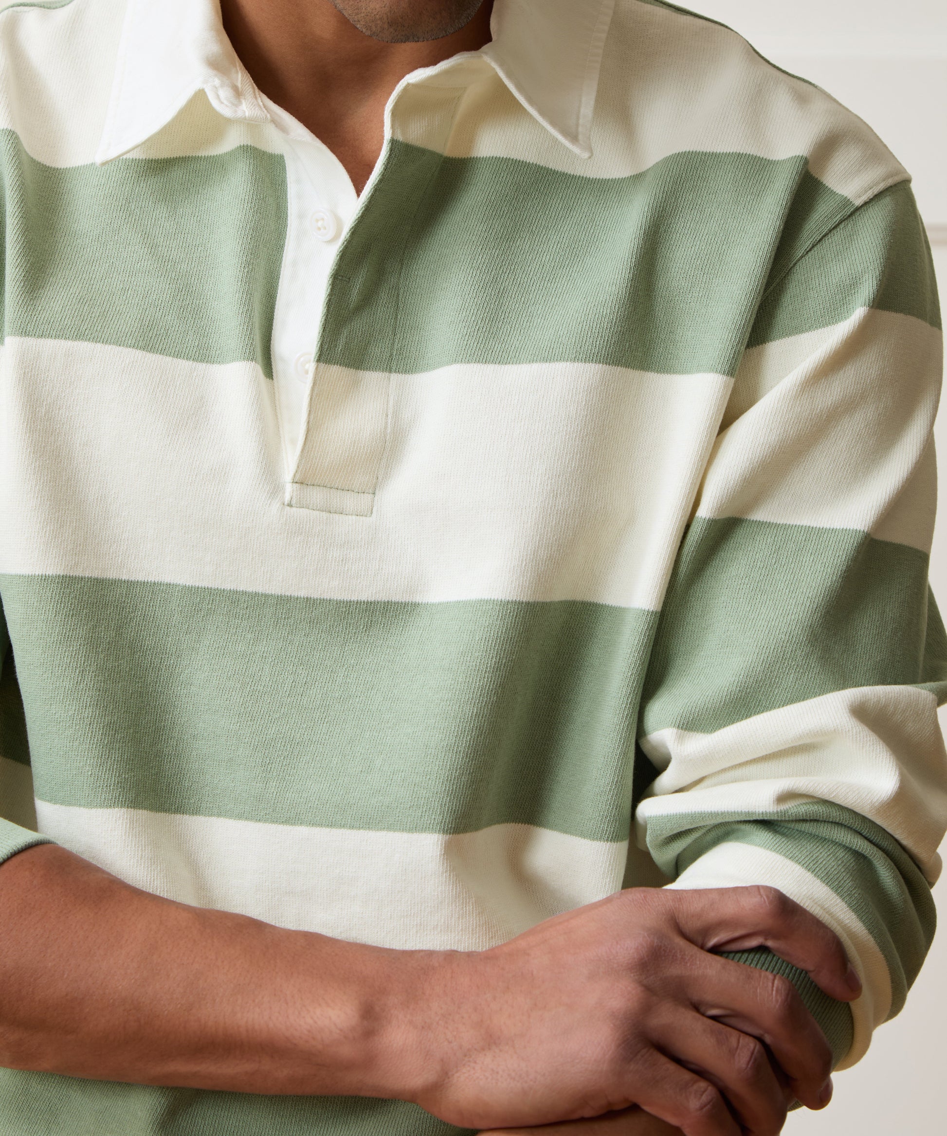 Lean into the prep trend with this classic rugby shirt. It’s made from a dense cotton fabric that clocks in at 360 grams per square meter and sports the iconic wide stripes. Traditional details — peep the contrasting twill collar and ribbed cuffs — are set off by a clean hidden placket and flattering silhouette. The easy fit (perfect for gamedays, weekends and more) is complemented by a vented hem. Wear it solo or layer it under a jacket for a pop.