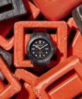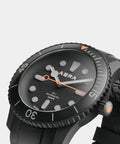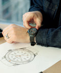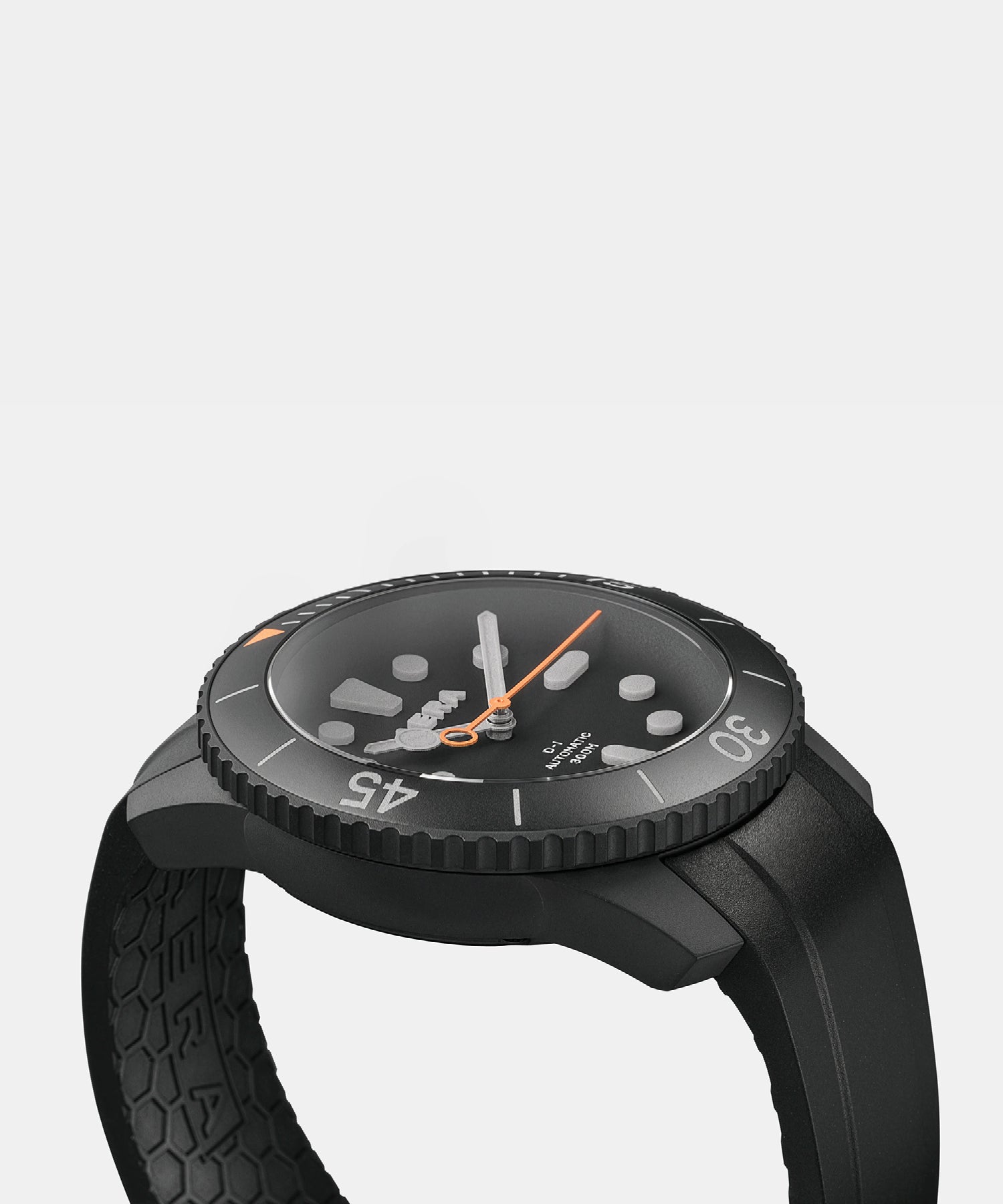 The D-1 features a titanium case with a matte “Diamond Like Carbon” finish, an anti-reflective domed sapphire crystal and a quick-release rubber strap. In low-light conditions, Super-LumiNova® on the markers, numbers and hands glows green for visibility. The color palette was inspired by an off-road expedition through Icelandic landscapes; ‘Blackout' captures obsidian volcanic sands, while 'Whiteout' reflects stark glacial waters. With a Swiss Automatic Movement and water-resistance up to 300 meters, you’ll be ready for anything.