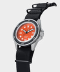 The U1-PD3 ProDiver Modello Uno U1-PD3-OR, boasting a 300-meter water resistance rating, is powered by a Japanese automatic movement. It comes with a high-performance orange dial, a lume-infused ceramic bezel insert, and dual-lume capability for enhanced visibility.