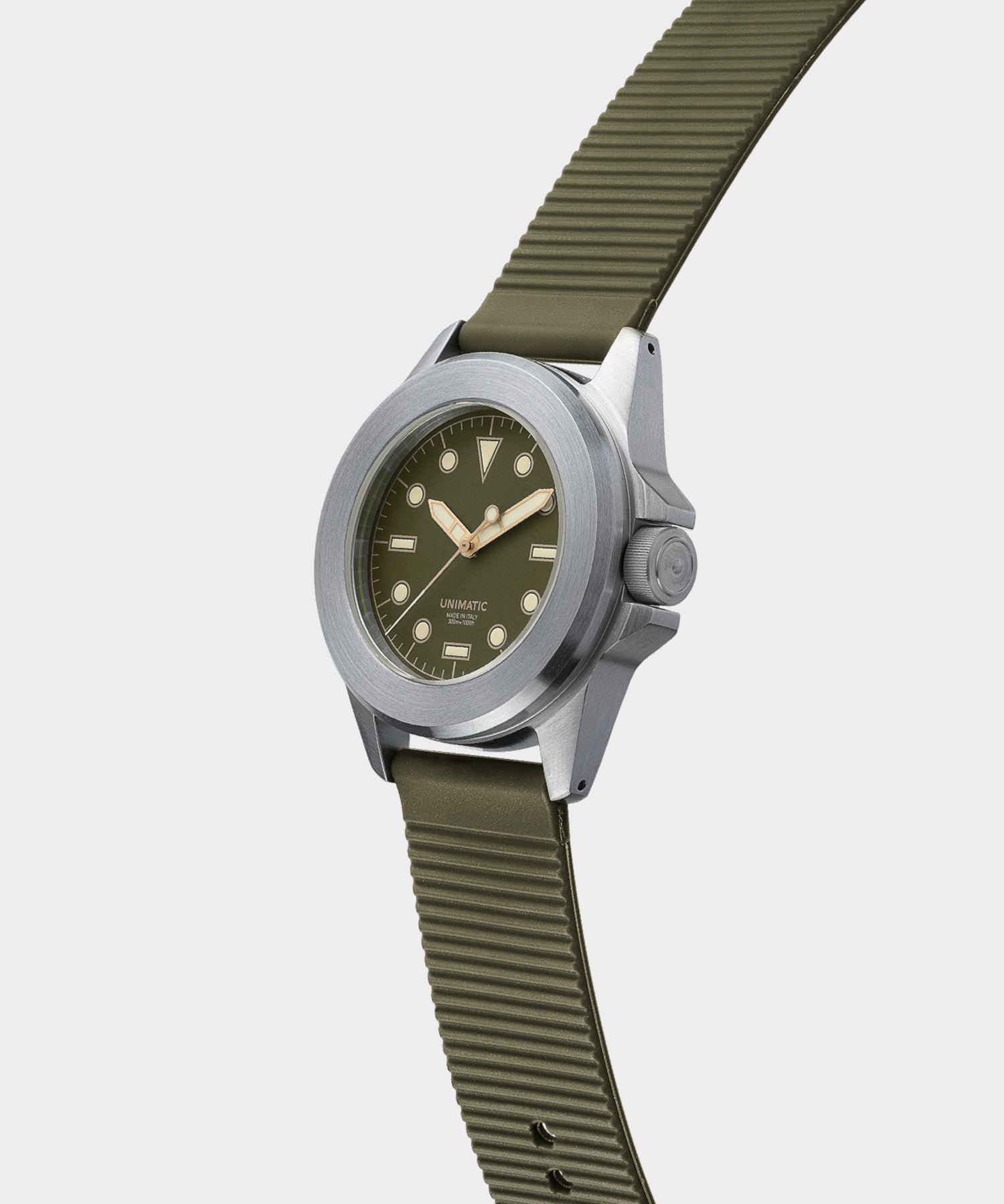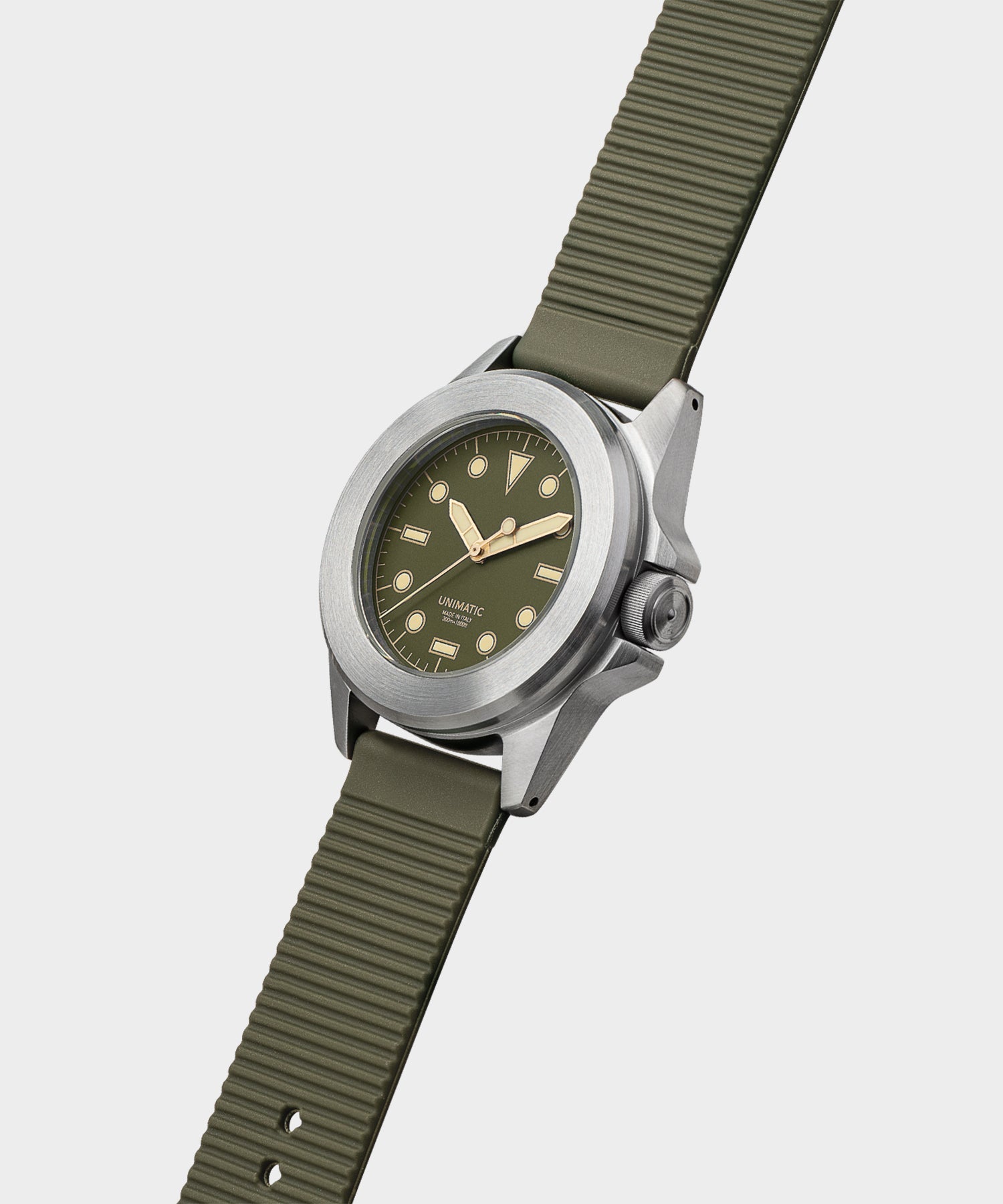 The Made in Italy diving watch is part of the permanent Unimatic Classic series, featuring high legibility dial in black matte with Super-LumiNova® C3 pale green for the best possible performance in any conditions. The permanent series is a functional design evolution of the Unimatic references and stands as an archetype of the ideal performance timepiece. It is distinct with a new ‘CLASSIC’ writing on the dial as well as on the screw down caseback engraved with the ‘Rosa dei Venti’ diagram.